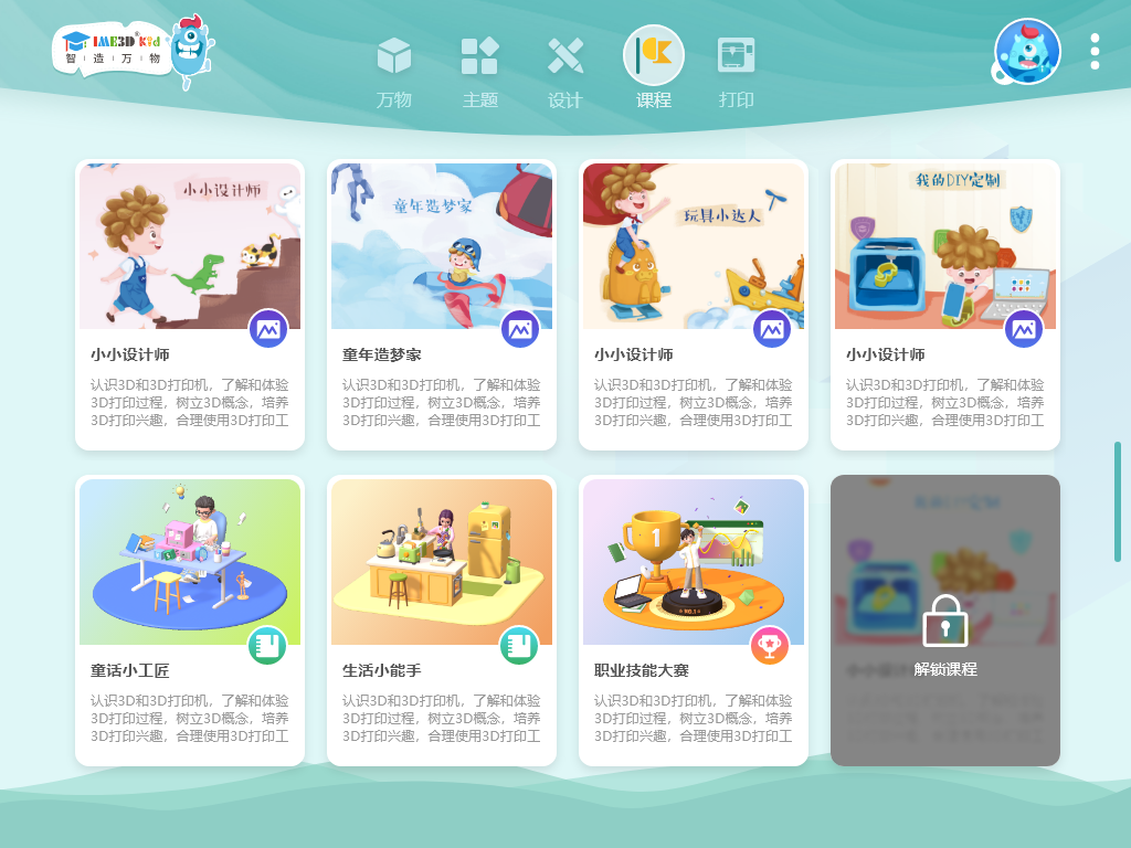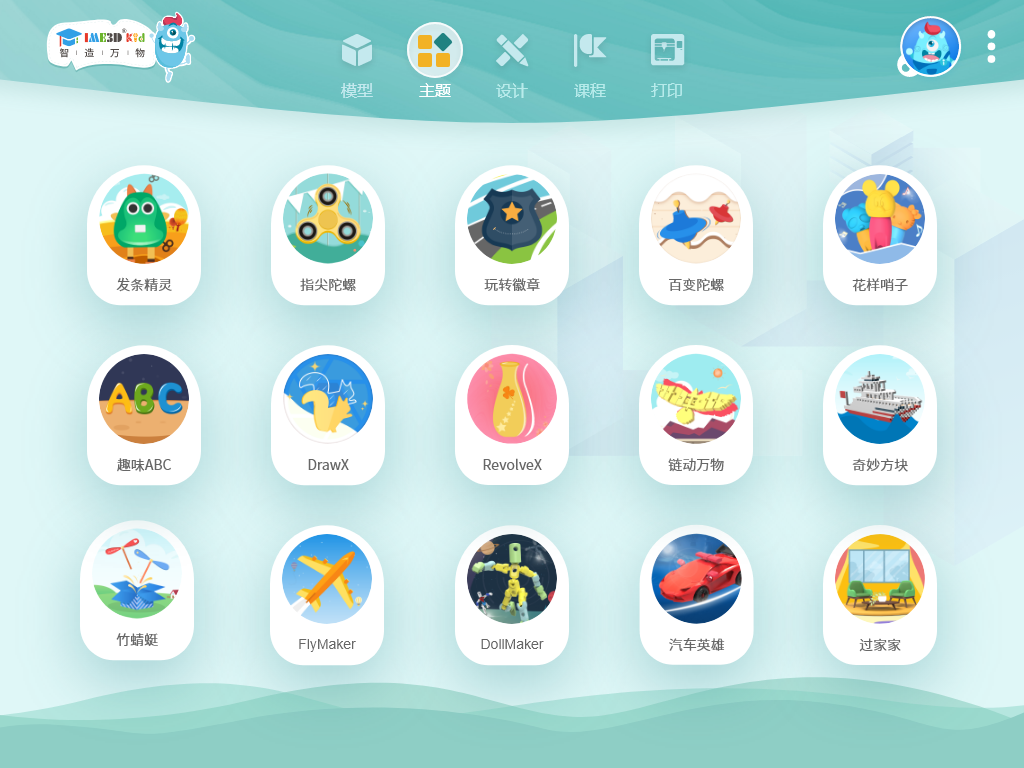 2.平台含超过15款主题式3D创意设计应用(App),支持3D涂鸦、3D积木、3D旋转、创意字母、传统陀螺、发条玩具、指尖陀螺、铰链玩具、房屋设计等创意主题式设计功能。